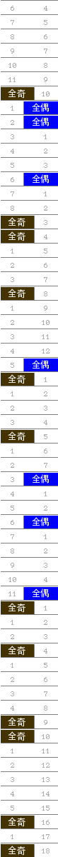 常规走势图 | 奇偶走势 | 大小走势 | 质合走势 | 和(合)值走势 | 012路走势 | 新规则走势 | 试机号合并走势图 | 隔期走势