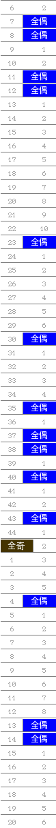 常规走势图 | 奇偶走势 | 大小走势 | 质合走势 | 和(合)值走势 | 012路走势 | 新规则走势 | 试机号合并走势图 | 隔期走势