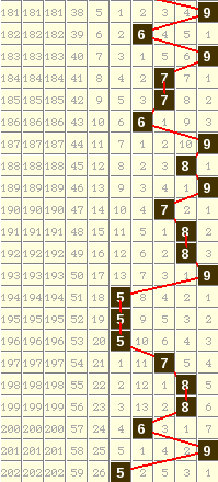 隔10期尾9走势=>常规走势 | 奇偶走势 | 大小走势 | 质合走势 | 和(合)值走势 | 012路走势