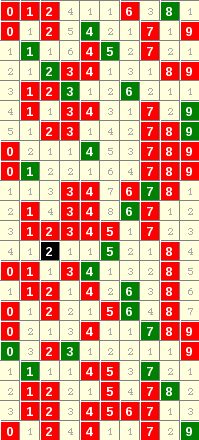 隔10期尾0走势=>常规走势 | 奇偶走势 | 大小走势 | 质合走势 | 和(合)值走势 | 012路走势