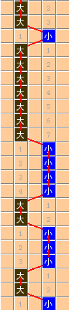 双期走势=>常规走势 | 奇偶走势 | 大小走势 | 质合走势 | 和(合)值走势 | 012路走势