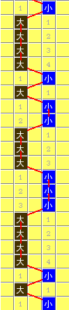 常规走势图 | 奇偶走势 | 大小走势 | 质合走势 | 和(合)值走势 | 012路走势 | 隔期走势