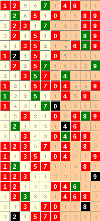 隔10期尾7走势=>常规走势 | 奇偶走势 | 大小走势 | 质合走势 | 和(合)值走势 | 012路走势