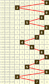 隔10期尾9走势=>常规走势 | 奇偶走势 | 大小走势 | 质合走势 | 和(合)值走势 | 012路走势