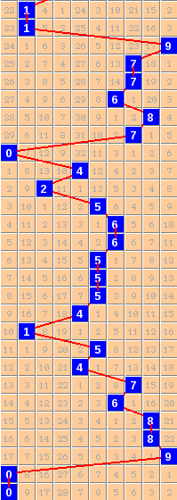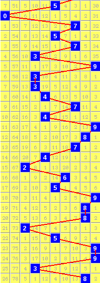 隔10期尾7走势=>常规走势 | 奇偶走势 | 大小走势 | 质合走势 | 和(合)值走势 | 012路走势