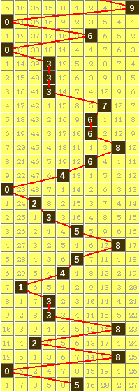 隔10期尾9走势=>常规走势 | 奇偶走势 | 大小走势 | 质合走势 | 和(合)值走势 | 012路走势