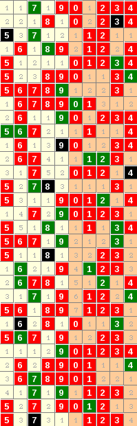 隔10期尾7走势=>常规走势 | 奇偶走势 | 大小走势 | 质合走势 | 和(合)值走势 | 012路走势