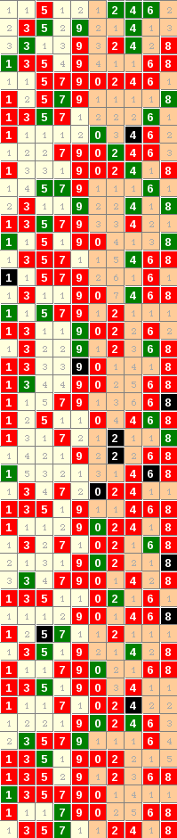 隔10期尾8走势=>常规走势 | 奇偶走势 | 大小走势 | 质合走势 | 和(合)值走势 | 012路走势