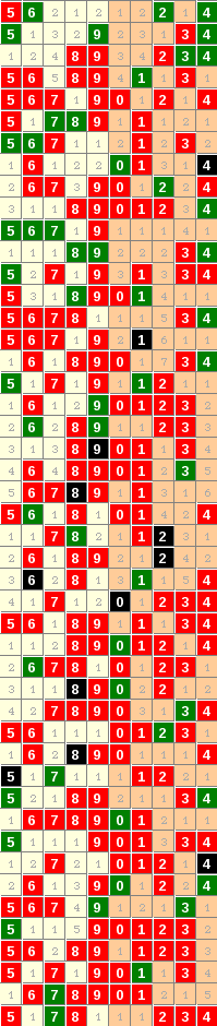 隔10期尾8走势=>常规走势 | 奇偶走势 | 大小走势 | 质合走势 | 和(合)值走势 | 012路走势