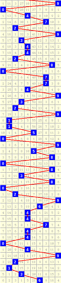 隔10期尾9走势=>常规走势 | 奇偶走势 | 大小走势 | 质合走势 | 和(合)值走势 | 012路走势
