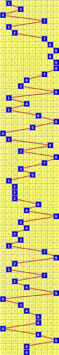 隔10期尾9走势=>常规走势 | 奇偶走势 | 大小走势 | 质合走势 | 和(合)值走势 | 012路走势