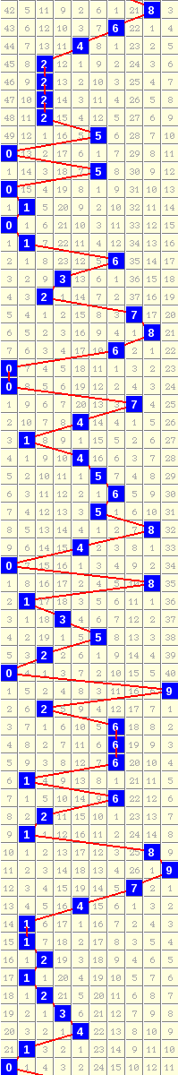 隔10期尾8走势=>常规走势 | 奇偶走势 | 大小走势 | 质合走势 | 和(合)值走势 | 012路走势