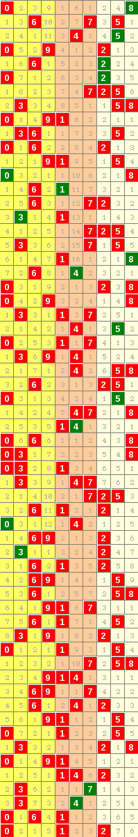 隔10期尾8走势=>常规走势 | 奇偶走势 | 大小走势 | 质合走势 | 和(合)值走势 | 012路走势