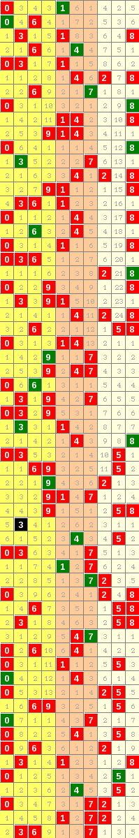 隔10期尾0走势=>常规走势 | 奇偶走势 | 大小走势 | 质合走势 | 和(合)值走势 | 012路走势