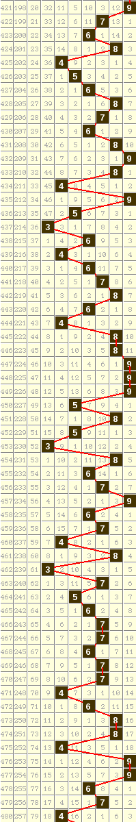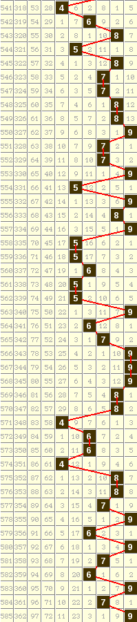 隔10期尾9走势=>常规走势 | 奇偶走势 | 大小走势 | 质合走势 | 和(合)值走势 | 012路走势