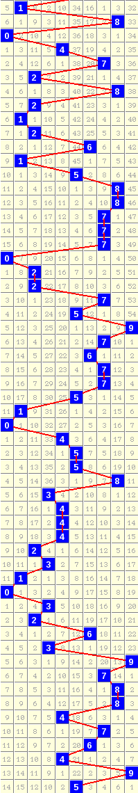 隔5期2走势=>常规走势 | 奇偶走势 | 大小走势 | 质合走势 | 和(合)值走势 | 012路走势