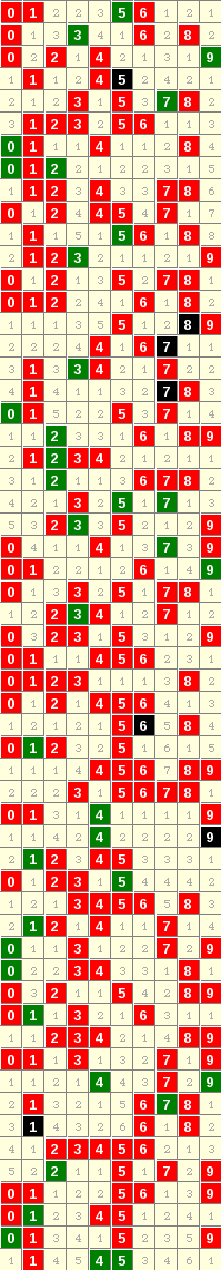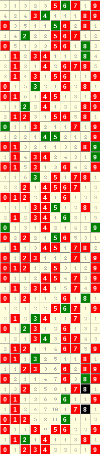 隔3期1走势=>常规走势 | 奇偶走势 | 大小走势 | 质合走势 | 和(合)值走势 | 012路走势