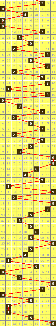 隔10期尾7走势=>常规走势 | 奇偶走势 | 大小走势 | 质合走势 | 和(合)值走势 | 012路走势