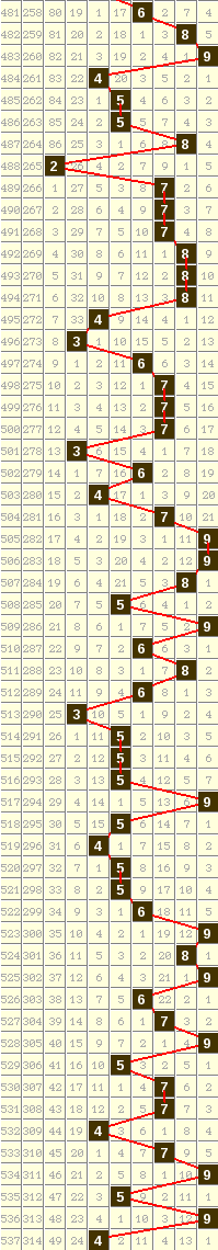 隔10期尾8走势=>常规走势 | 奇偶走势 | 大小走势 | 质合走势 | 和(合)值走势 | 012路走势