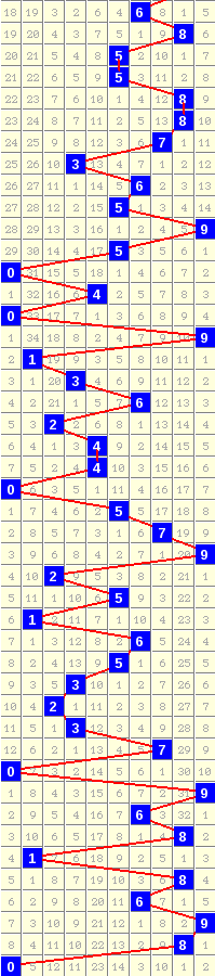 隔10期尾6走势=>常规走势 | 奇偶走势 | 大小走势 | 质合走势 | 和(合)值走势 | 012路走势
