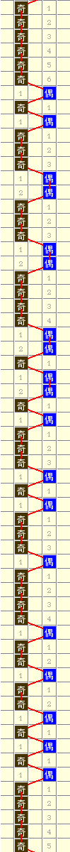 隔3期2走势=>常规走势 | 奇偶走势 | 大小走势 | 质合走势 | 和(合)值走势 | 012路走势