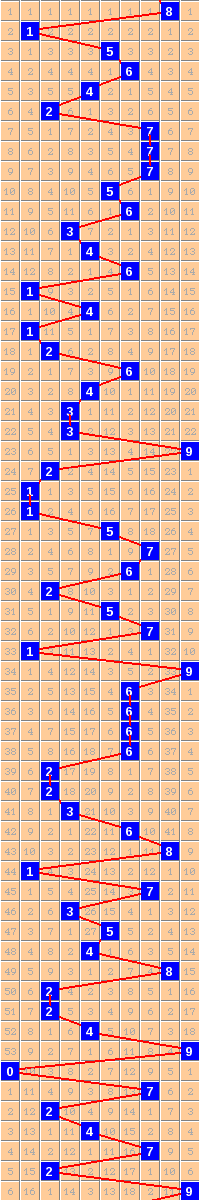 隔10期尾8走势=>常规走势 | 奇偶走势 | 大小走势 | 质合走势 | 和(合)值走势 | 012路走势