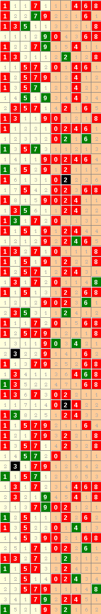 隔10期尾7走势=>常规走势 | 奇偶走势 | 大小走势 | 质合走势 | 和(合)值走势 | 012路走势
