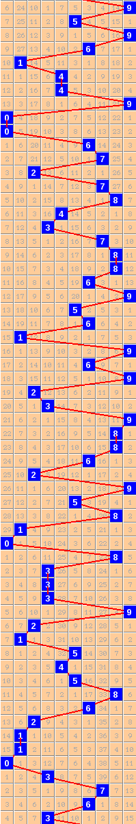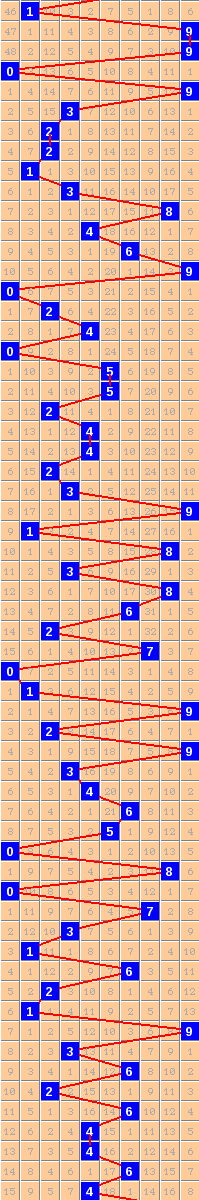 隔10期尾9走势=>常规走势 | 奇偶走势 | 大小走势 | 质合走势 | 和(合)值走势 | 012路走势