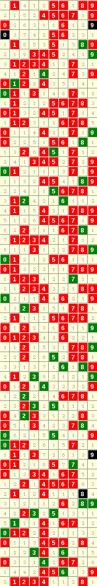 隔10期尾0走势=>常规走势 | 奇偶走势 | 大小走势 | 质合走势 | 和(合)值走势 | 012路走势