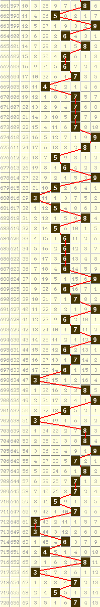 隔10期尾7走势=>常规走势 | 奇偶走势 | 大小走势 | 质合走势 | 和(合)值走势 | 012路走势