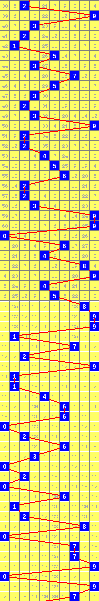 隔10期尾9走势=>常规走势 | 奇偶走势 | 大小走势 | 质合走势 | 和(合)值走势 | 012路走势