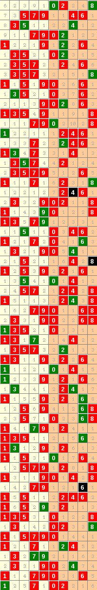 隔10期尾8走势=>常规走势 | 奇偶走势 | 大小走势 | 质合走势 | 和(合)值走势 | 012路走势