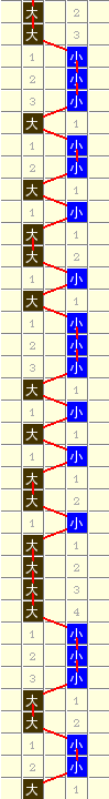 常规走势图 | 奇偶走势 | 大小走势 | 质合走势 | 和(合)值走势 | 012路走势 | 隔期走势