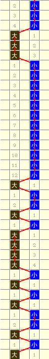 常规走势图 | 奇偶走势 | 大小走势 | 质合走势 | 和(合)值走势 | 012路走势 | 隔期走势